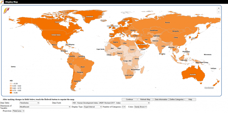 An example of the Display Map page with HDI.