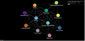 The IFs Network Diagram is an interactive visualization of the internal structure of the International Futures (IFs) model. in IFs and how they influence one another. It is a map of the IFs model’s logic. You can use it to answer questions like “What affects this variable?” or “What does this variable affect?”. Users can explore how major system sectors interact; at the variable level, they can interrogate specific influence pathways by examining drivers (inputs), outcomes (outputs), degrees of separation, and shortest paths between variables. In this way, the IFs Network Diagram functions as a transparency and learning tool, allowing users to inspect and reason about what influences what is within the IFs system, rather than treating the model as a black box.