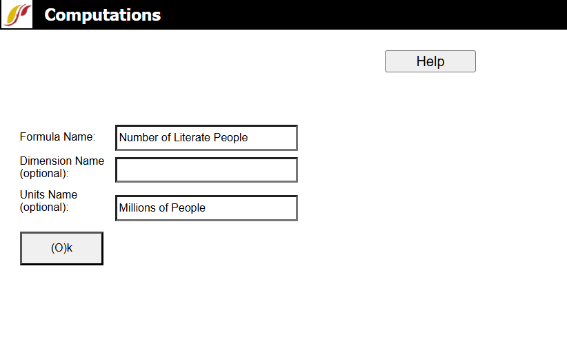 An example of the Computations page prompt to enter and formula for the number of literate people.