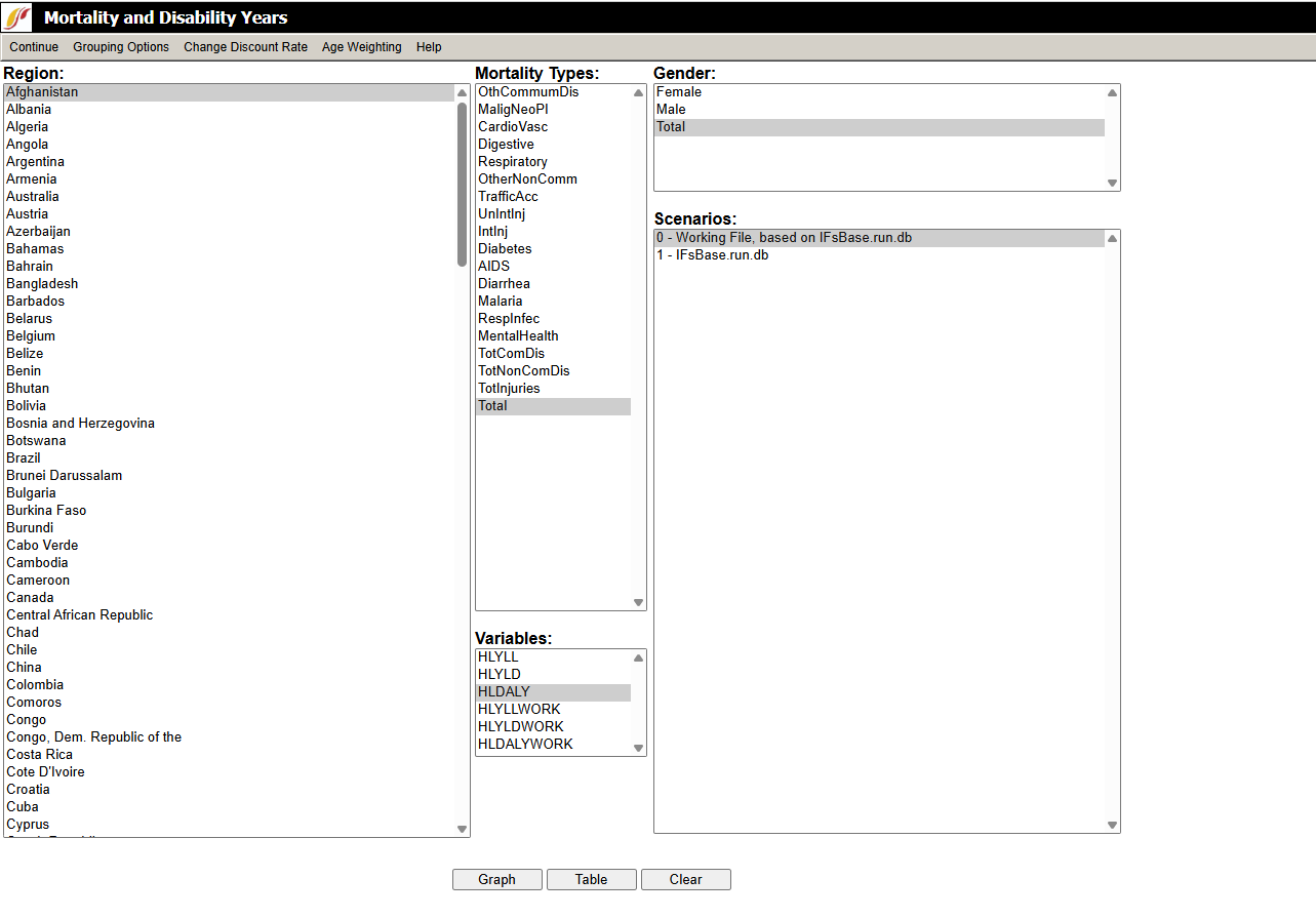 Example of what the Mortality and Disability Specialized Display feature looks like when first opened.