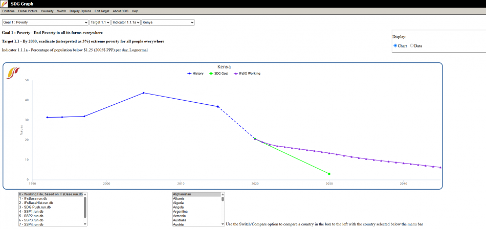 An example of the SDG Graph display for Kenya with goal 1 and target 1.1 chosen.